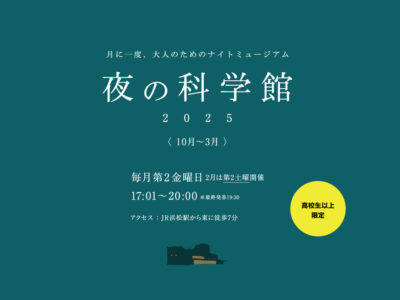 CultureNatureDecember 12th (Friday) This month's theme is "Words" ~ "Night Science Museum" held every second Friday of the month ~Night Museum is limited to high school students and above.