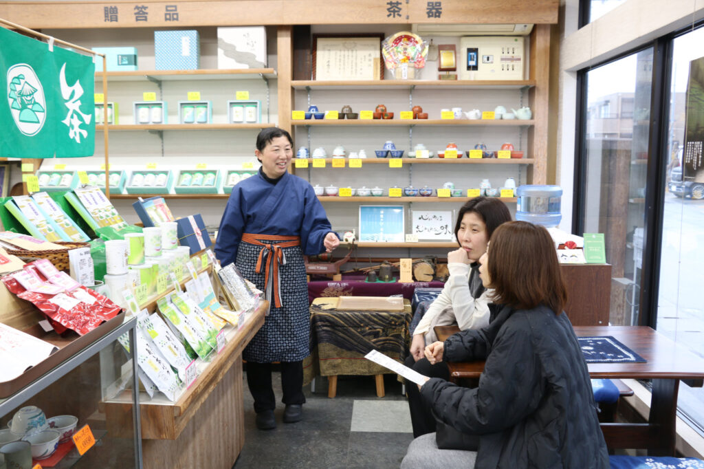 迎えてくれたのは、宇布乃園五代目店主の松本陽子さん。「お茶が大好きお茶子さん」の愛称で親しまれる存在です。お茶の話が始まると、語り口はやわらかく、こちらの緊張も自然とほどけていきます。