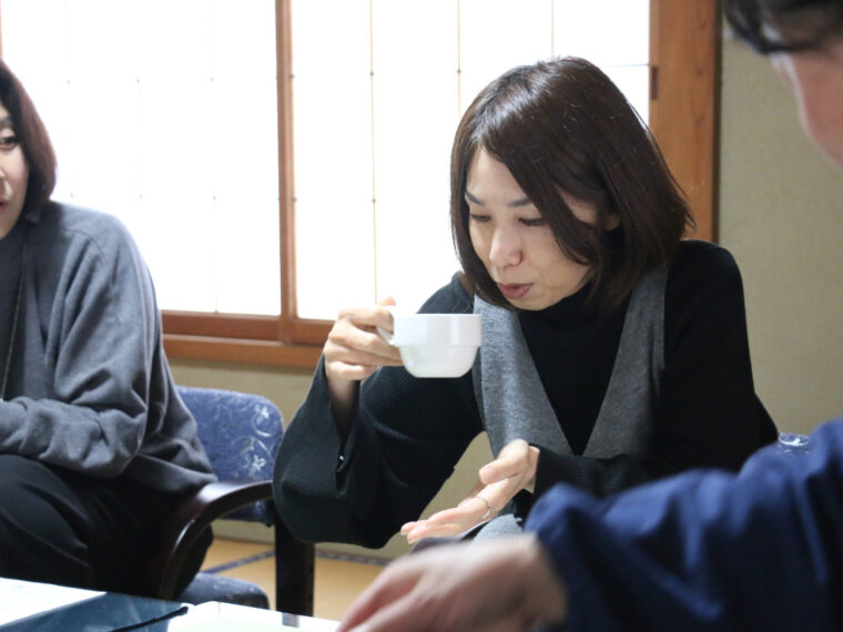 お茶の話を聞きながら、参加者同士の会話も少しずつ弾み、場の空気はさらに和やかに。難しい講義というより、気軽なおしゃべりのように楽しめる時間です。