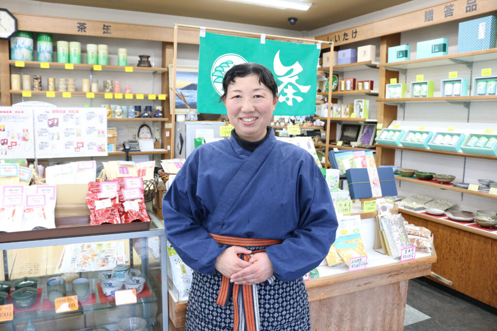 浜松市出身。三姉妹の長女として生まれ、家業を受け継ぐ。日本茶インストラクターの資格を取得し、お茶の魅力を伝える講座や体験イベントを開催しています。これからの時代のお茶は「飲む」だけでなく「体験するもの」と考え、日本茶体験施設「御茶處うぶのえん」を立ち上げるなど、地域活性化にも取り組んでいます。「心にのこる、忘れられない味」をモットーに、「おいしかったな、また飲みたいな」と思ってもらえる一杯を大切にしています。