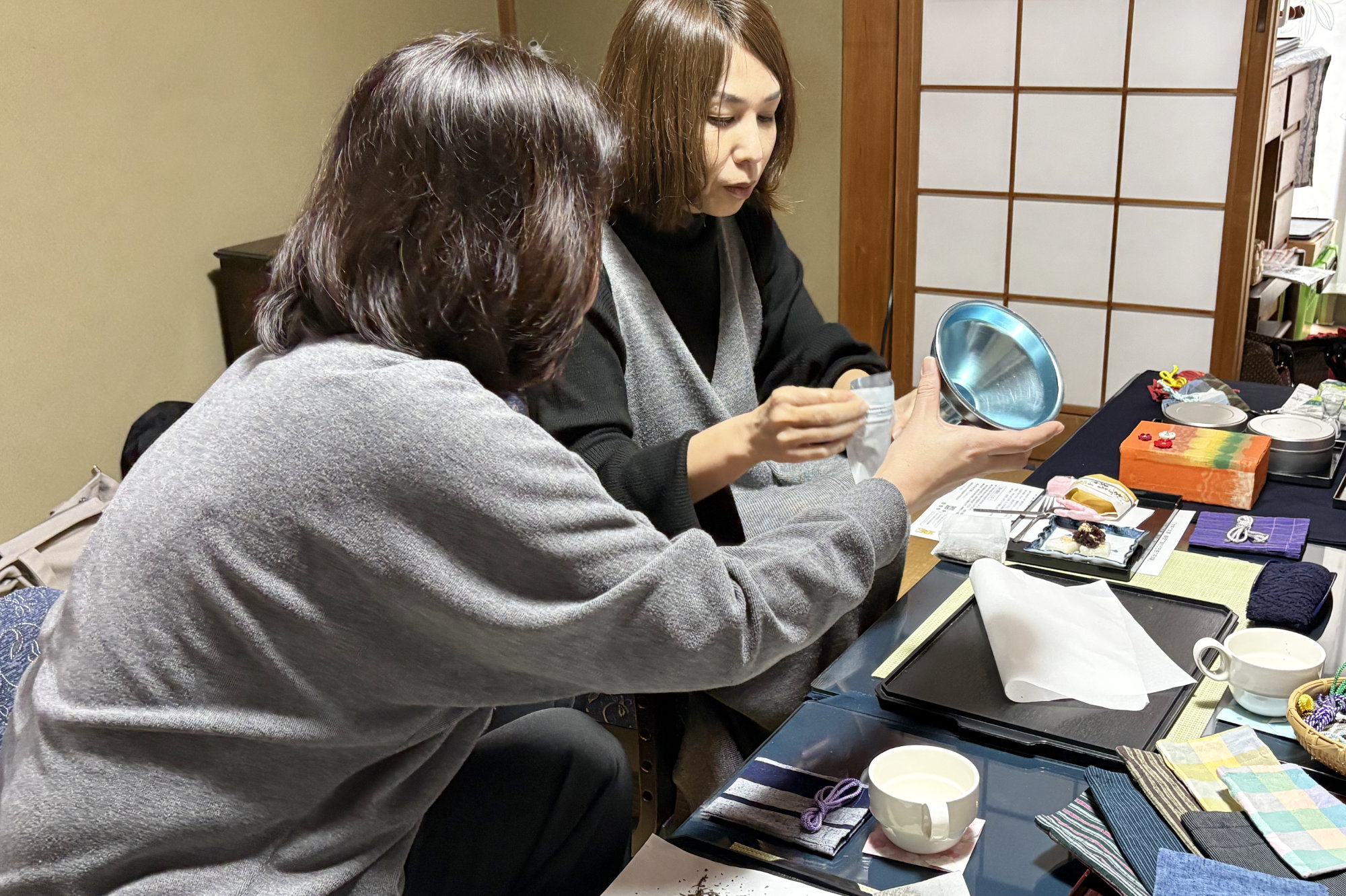 柄と色の組み合わせを考えるひとときも楽しく、自然と会話が生まれます。香りとともに、この場所で過ごした時間までもが、そっと包み込まれていくようです。