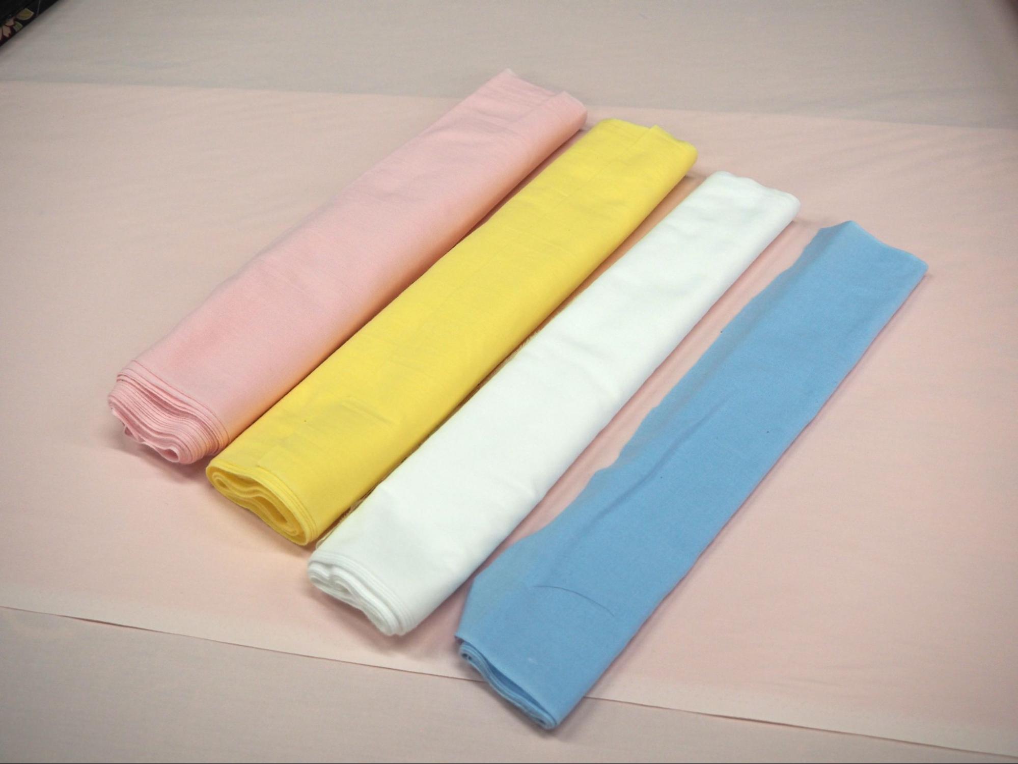②4色の生地から一枚選びます。