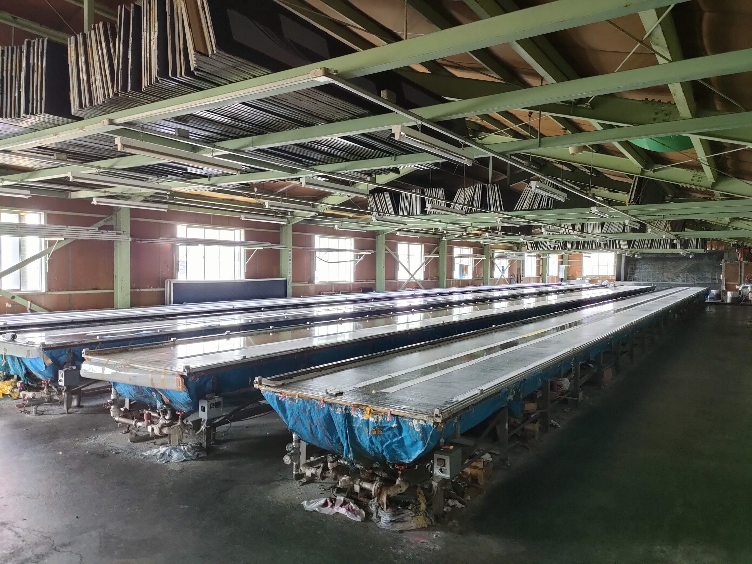 新旧活躍する大型機械が並ぶ工場内