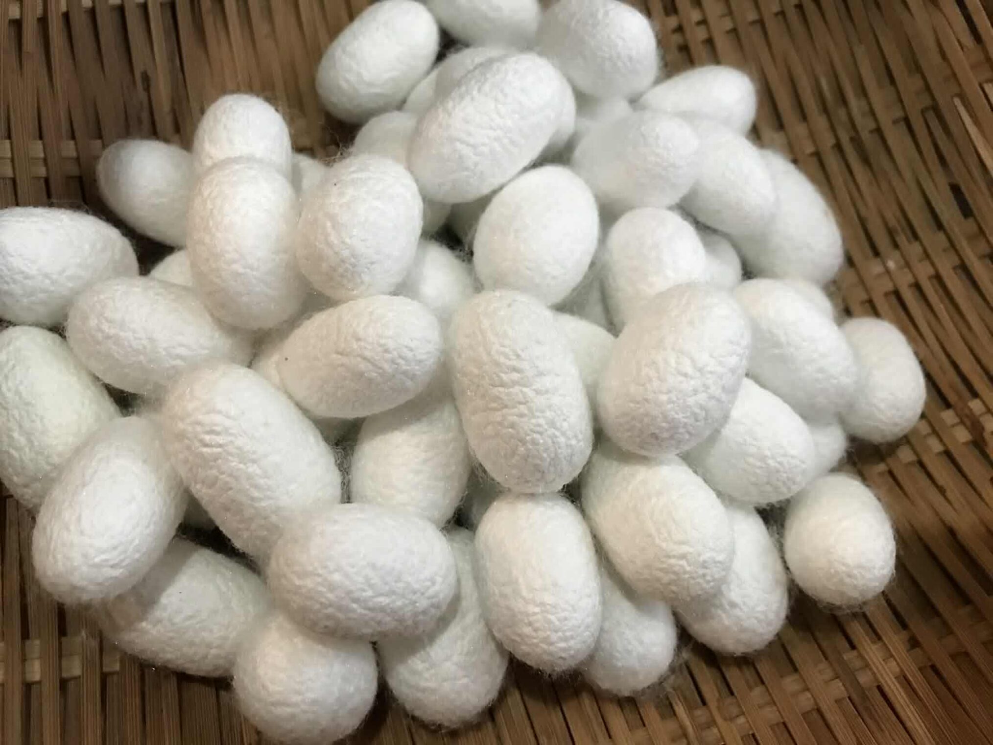 繭は、生糸(絹織物になる前の糸)であり、天然のたんぱく質(シルク成分)を含む素材として知られています。