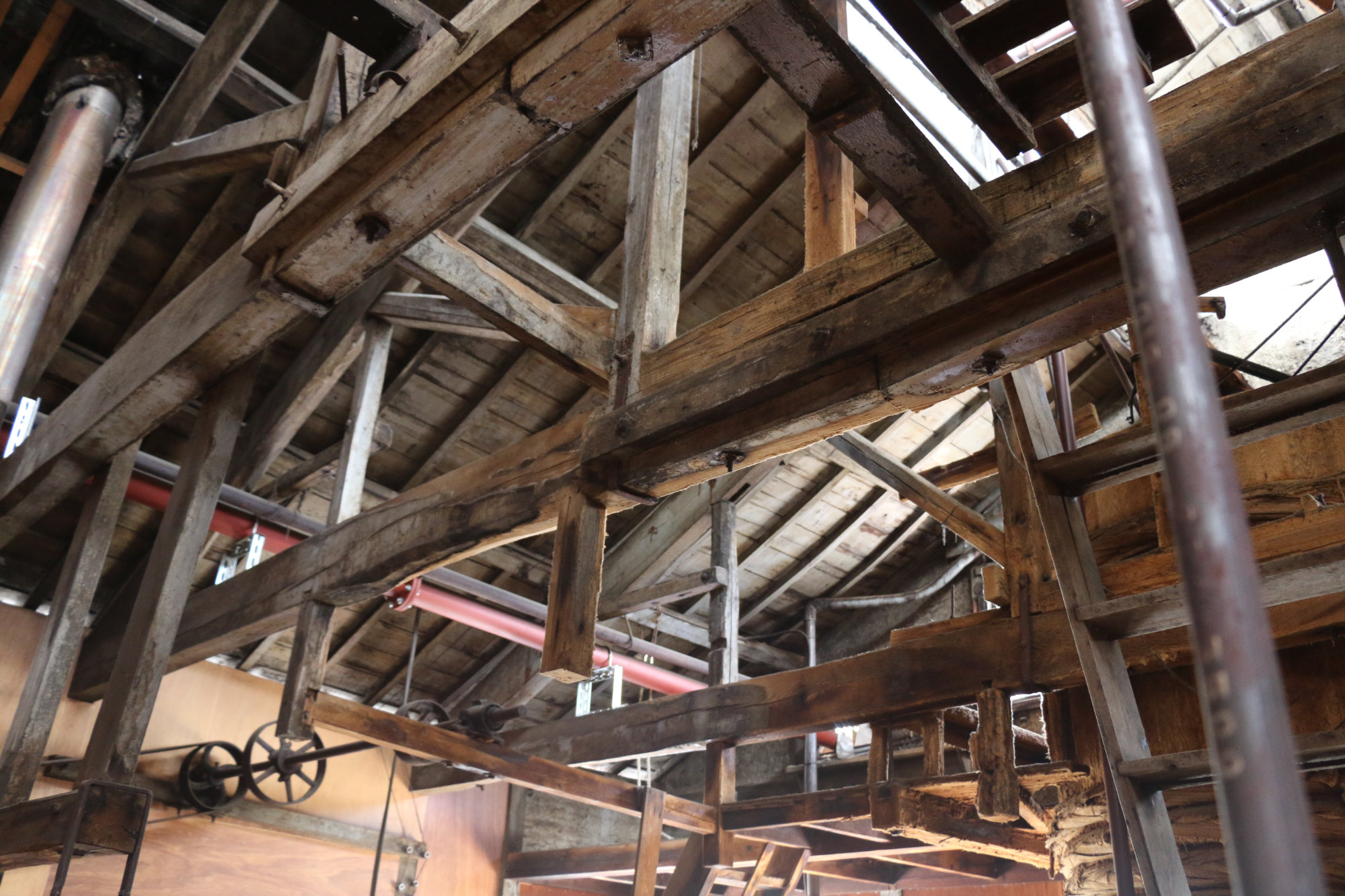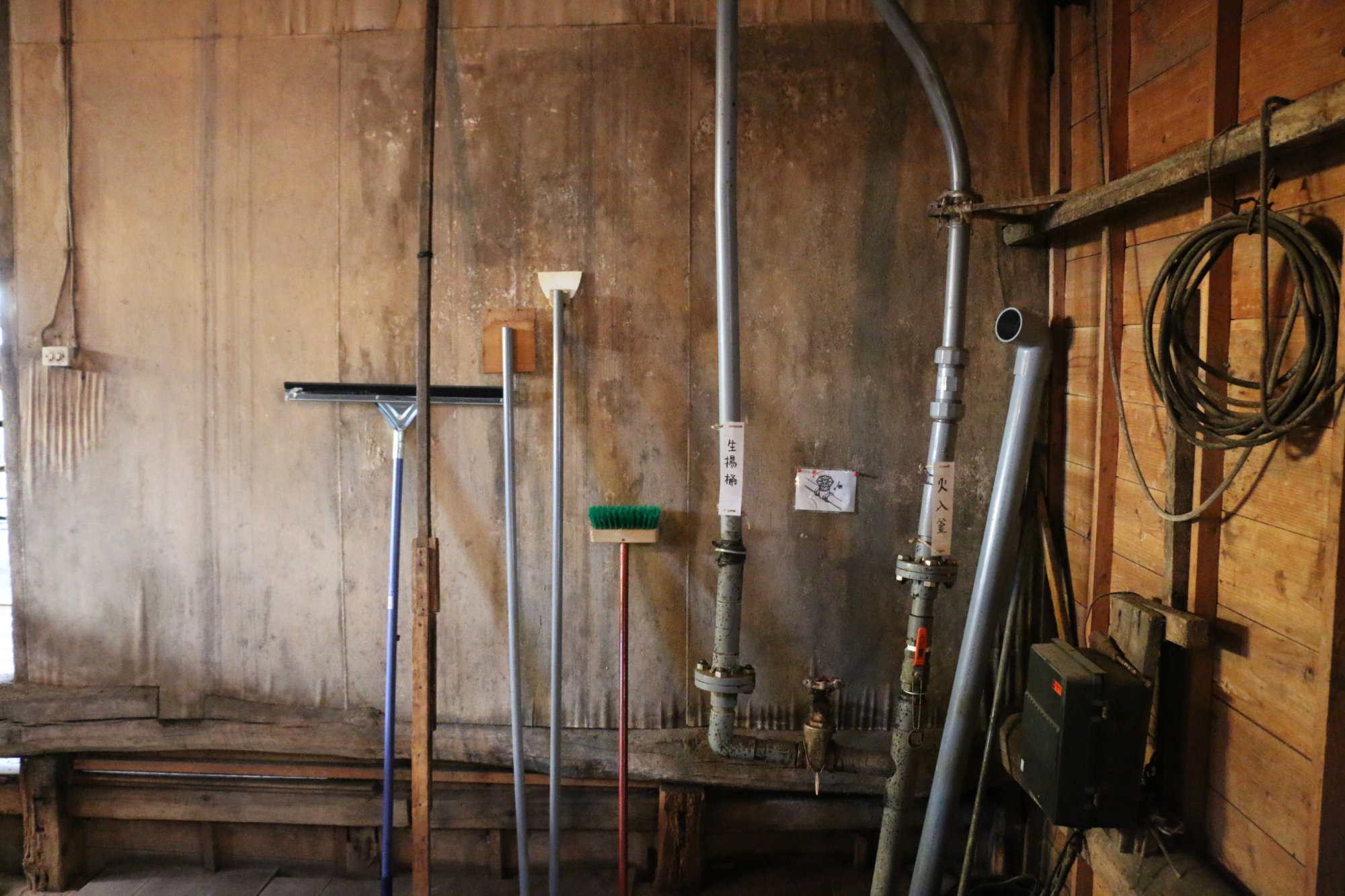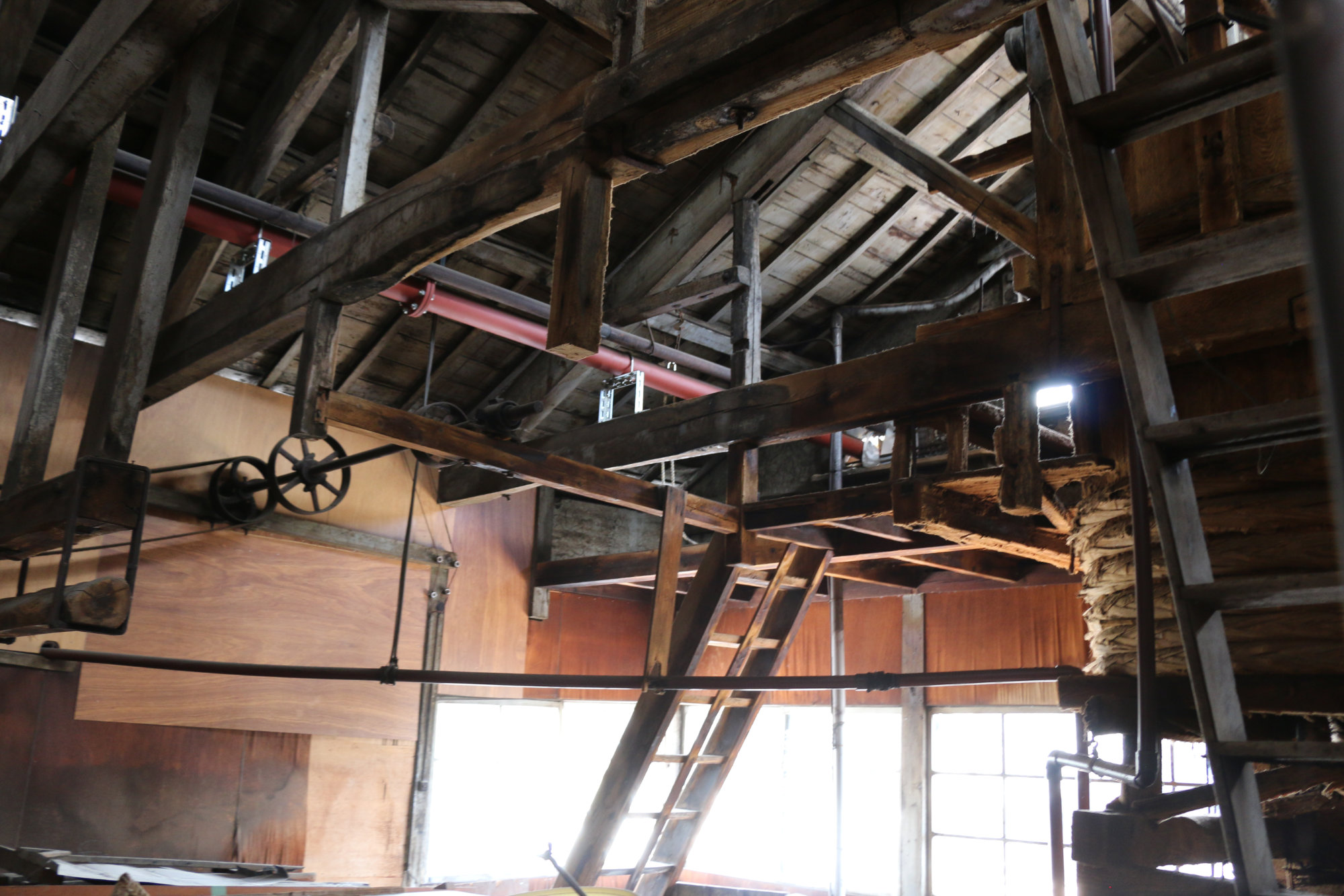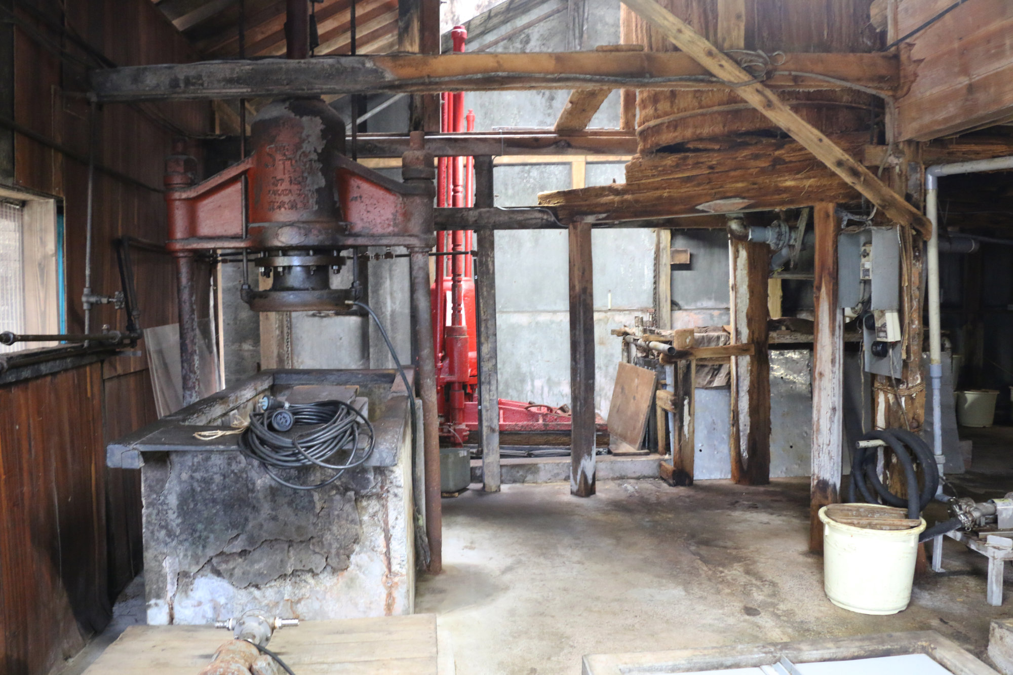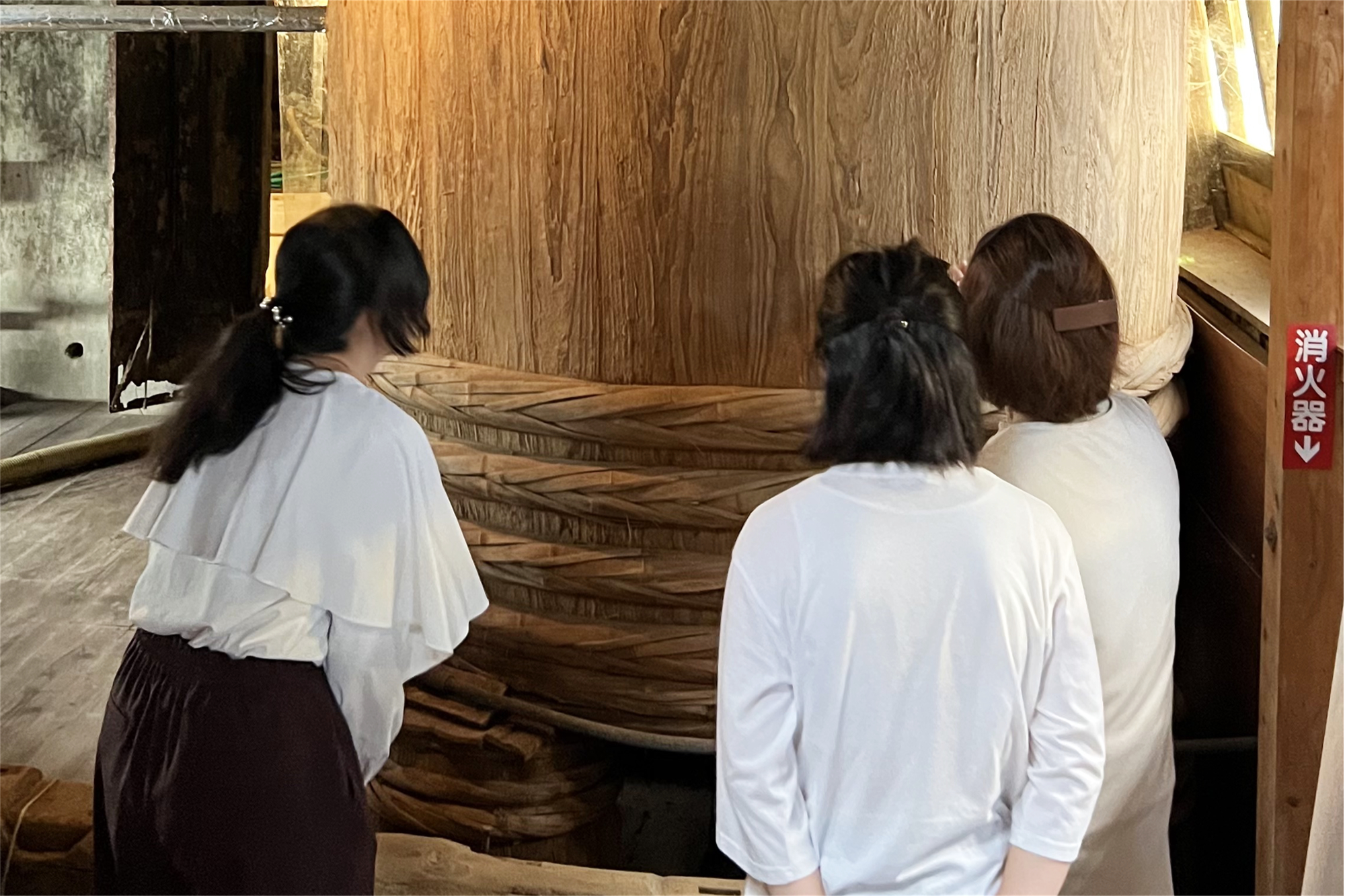 天井には梁がめぐり、差し込むやわらかな光が、蔵の奥へと道をつくります。並ぶ桶のそばには、試行錯誤の末に生まれ、あるいは使われずに残された道具たちがひっそりと佇み、代々の職人たちの工夫と葛藤の時間を物語っています。