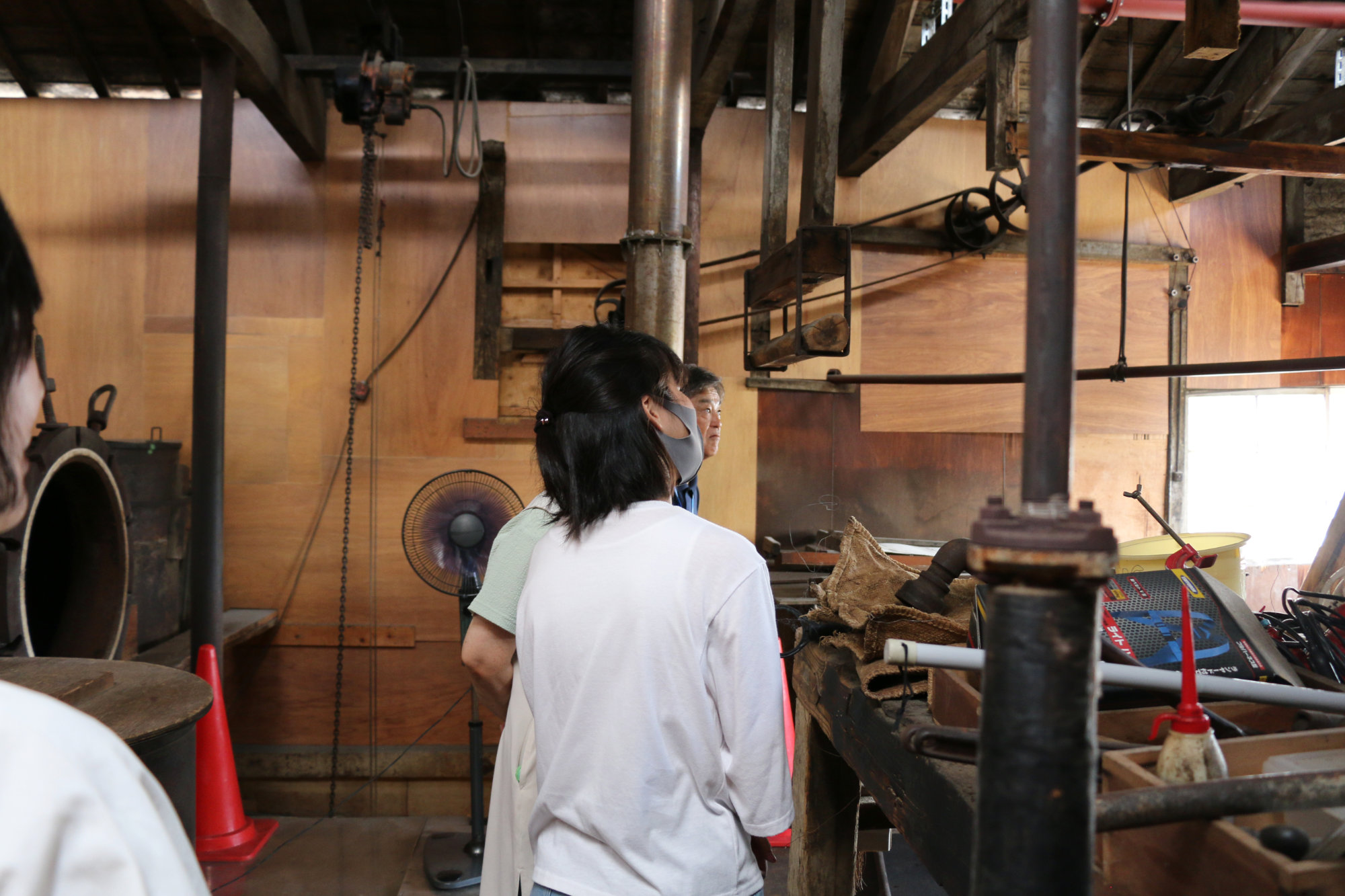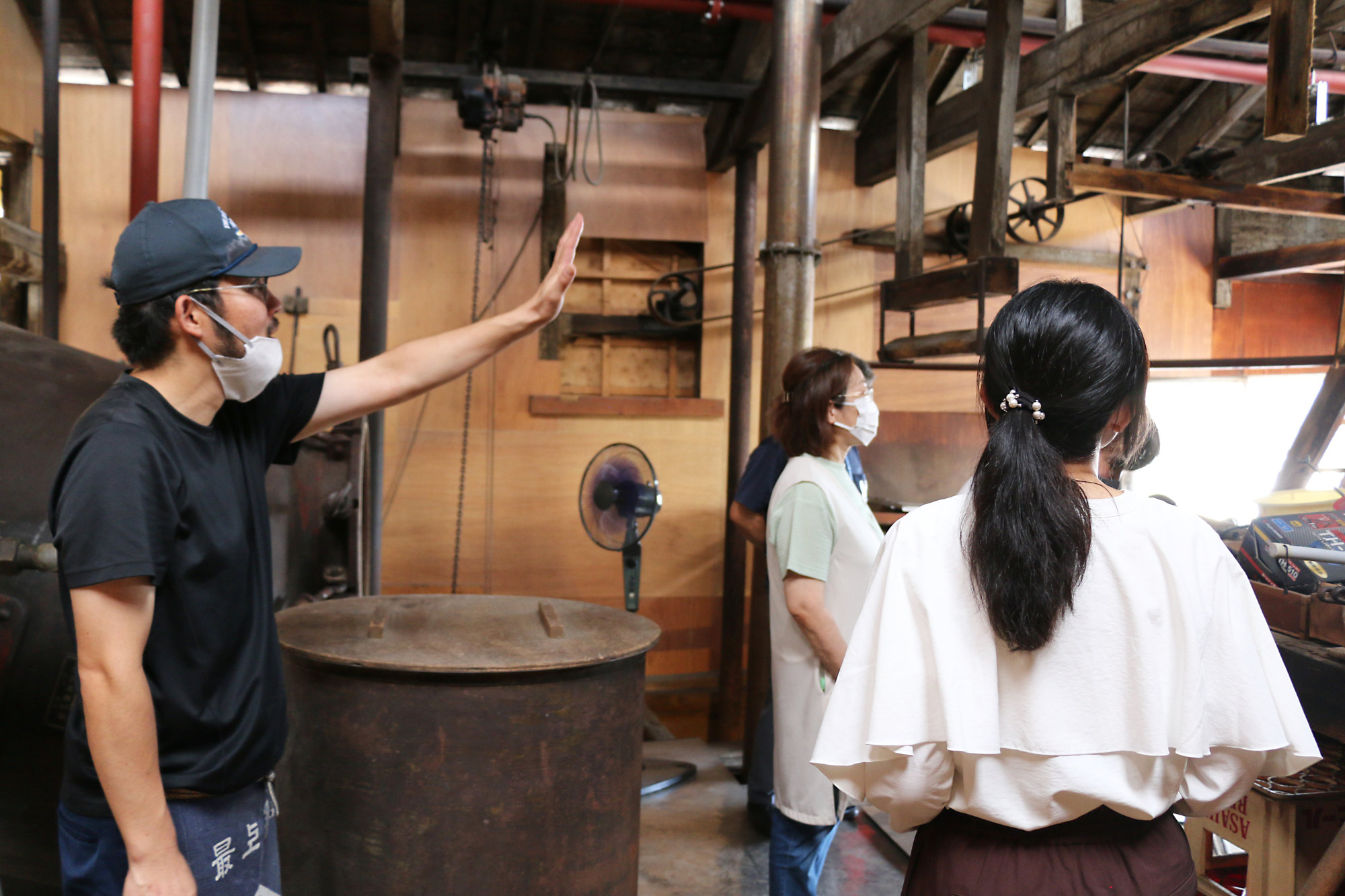 体験は約1時間半。最初に、醤油の歴史や「もろみ」についてのお話を聞いた後、昔ながらの木造の蔵の中へ。熟成中のもろみや、代々使われてきた道具を間近で見学できます。