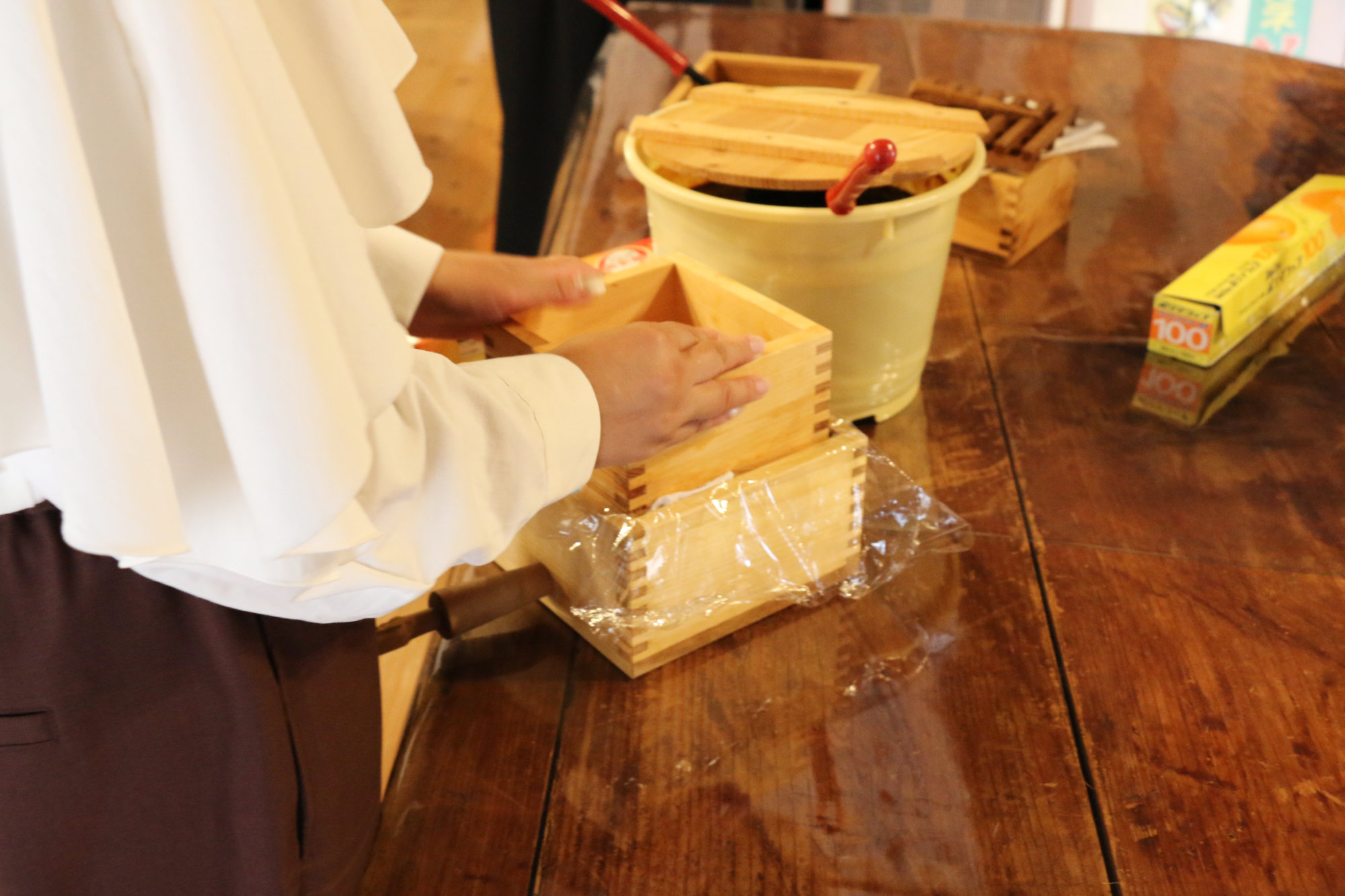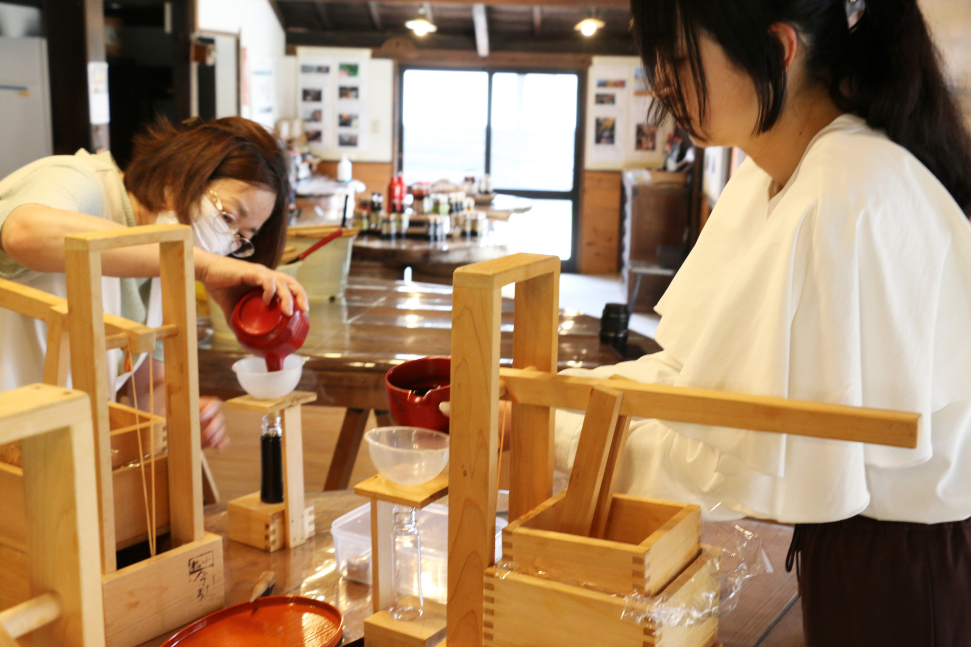 ・体験でできた醤油はお持ち帰りいただけます。基本(火入れ体験なしの場合)は、クーラーバッグなど冷所でのお持ち帰りをお勧めしています。