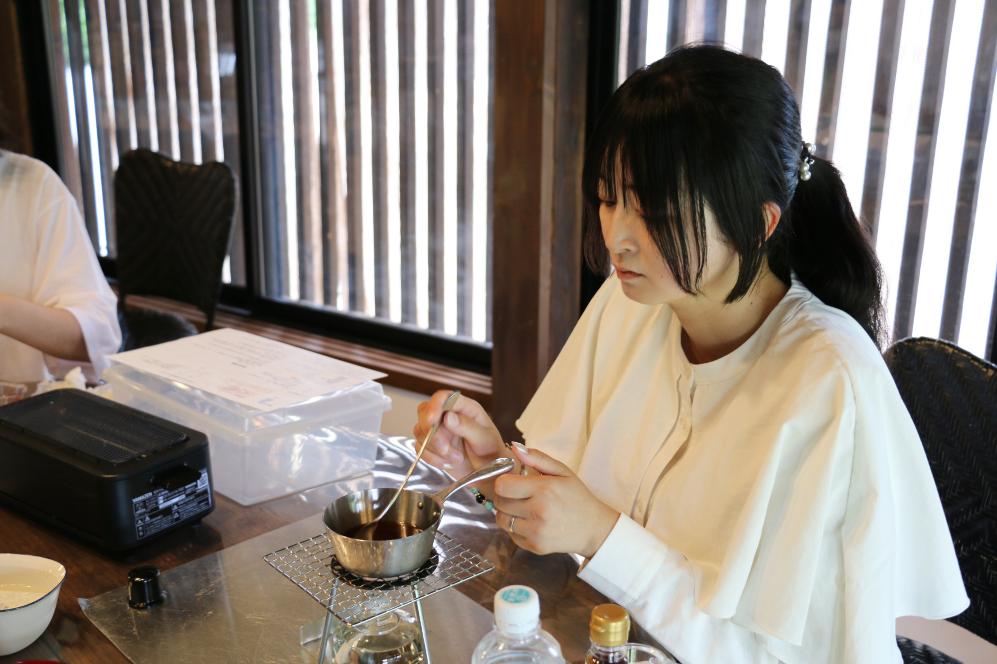 - タレを作り、アルコールランプでじっくり加熱
