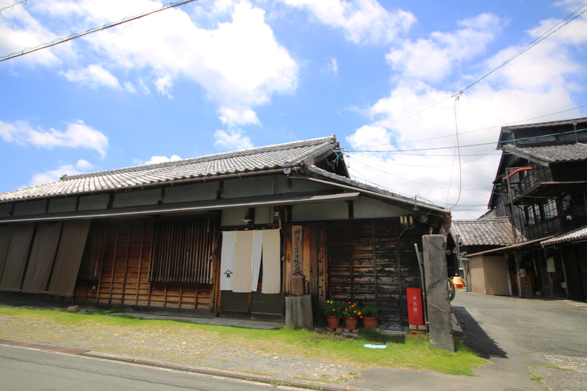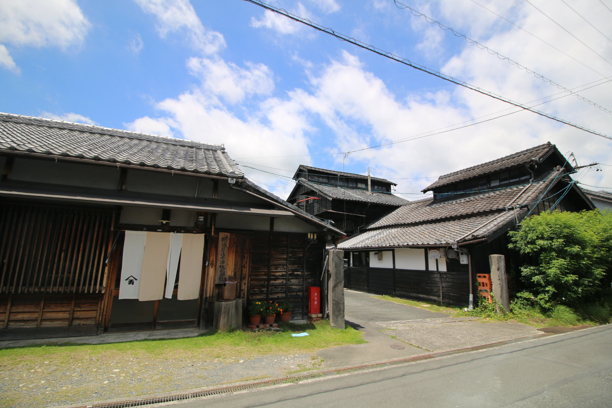 浜松駅から車で約30分。「明治屋醤油」は、今も昔ながらの木造の蔵で、丁寧な醤油づくりを続けています。