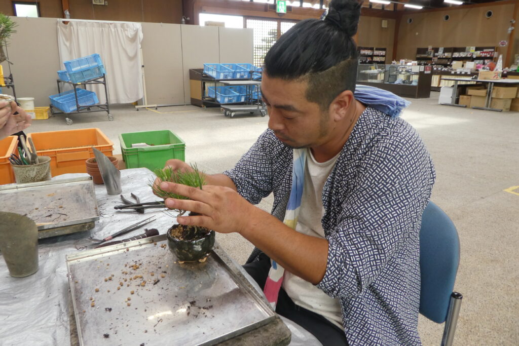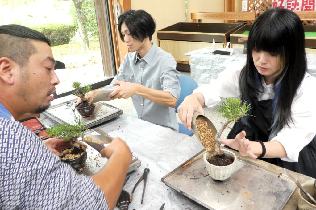 今回の体験の講師を務めるのは「盆栽いくま」の西岡さんと八代さんです。