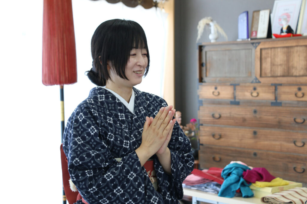 現在は「ななほう」で体験型の着付けを行うほか、七五三や振袖など、家族の節目を迎えるときに着付けのお手伝いもしています。