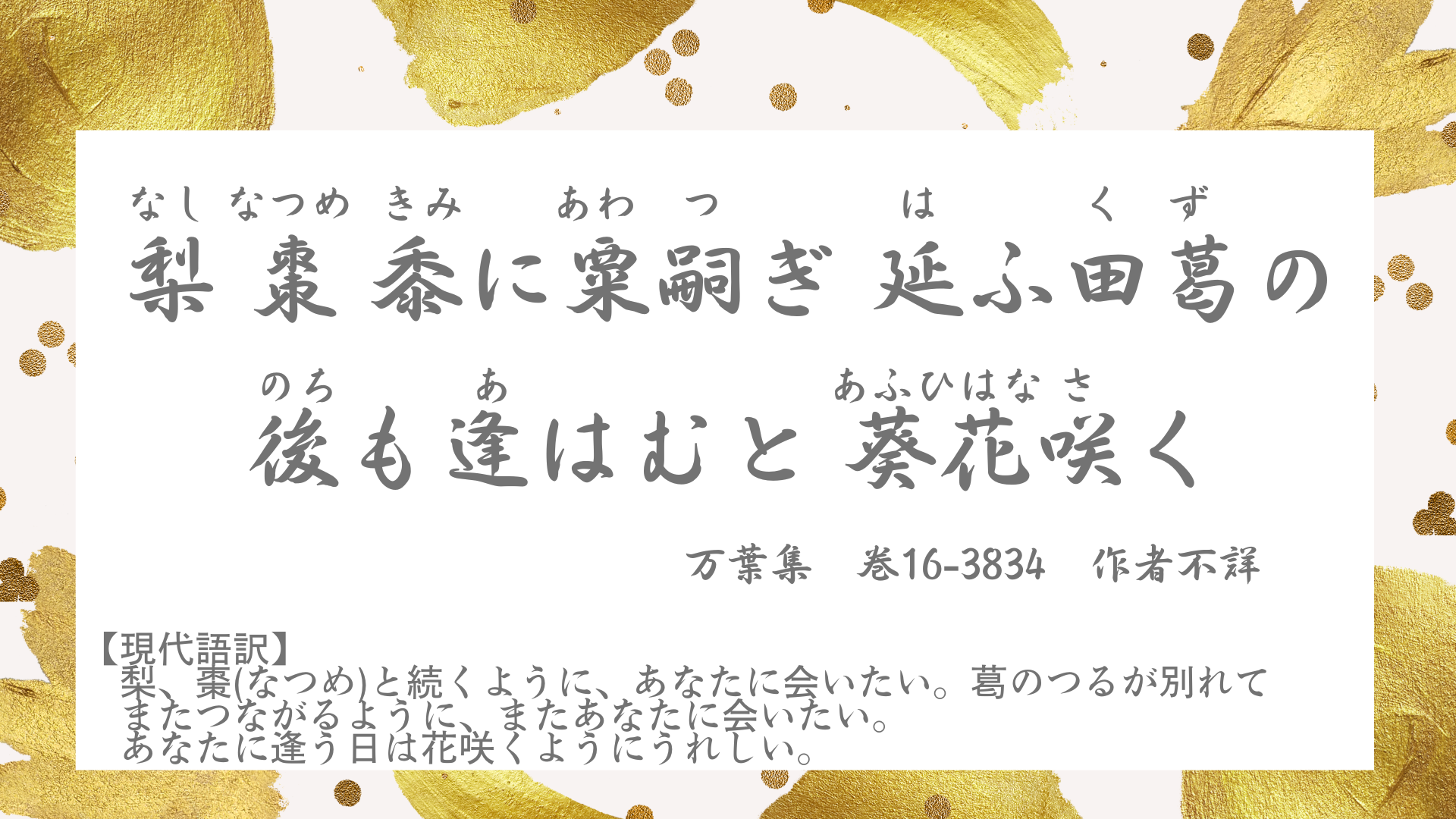 日本最古の歌集『万葉集』には、植物や動物、自然への賛美が数多く詠まれています。登場する植物は約330種、動物は約70種で、そのうち現代でも食材として親しまれているものは約130種にのぼります。
