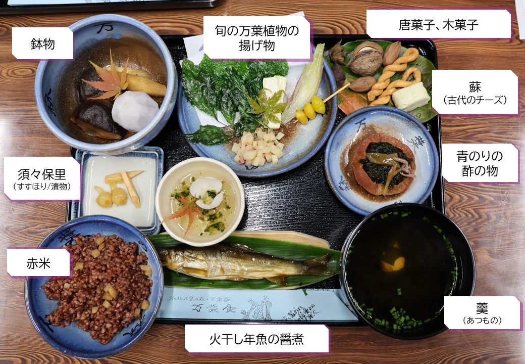 こうした歌には、人々の暮らしや食をうかがわせる記述も多く見られ、これらの記録をもとに再現されたのが「万葉食」です。