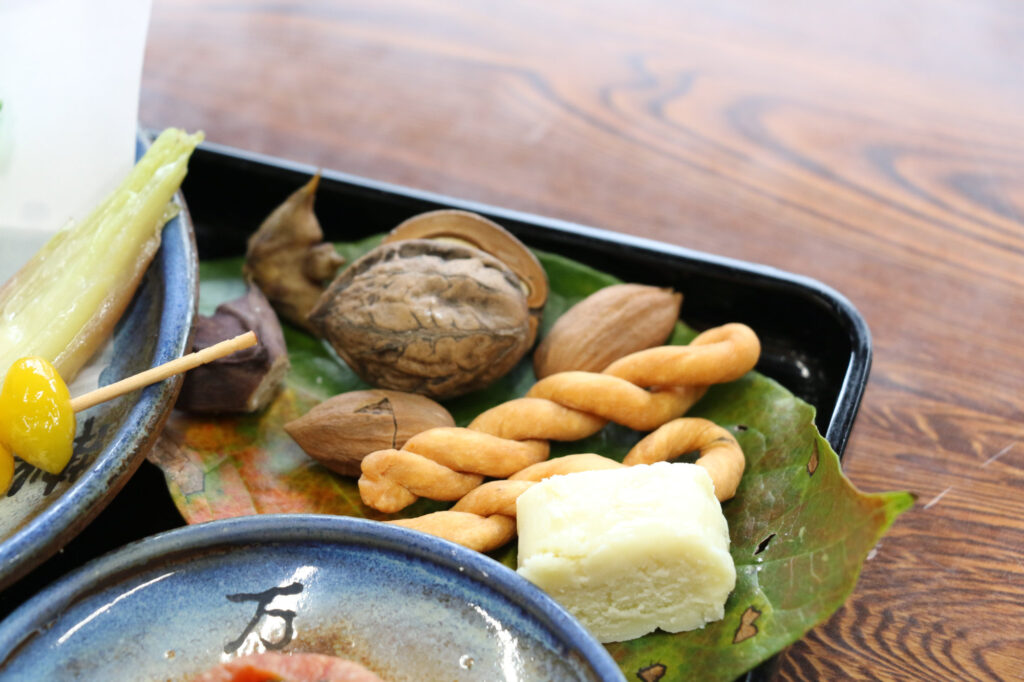 一見すると質素に見える膳ですが、噛むほどに素材の滋味が広がり、身体の奥までやさしく染み渡ります。自分たちで作った蘇や唐菓子を味わう喜びも、また格別です。食べ終えるころには、心の中に静かな時間がそっと訪れます。