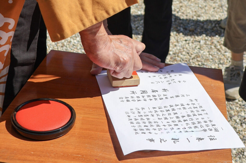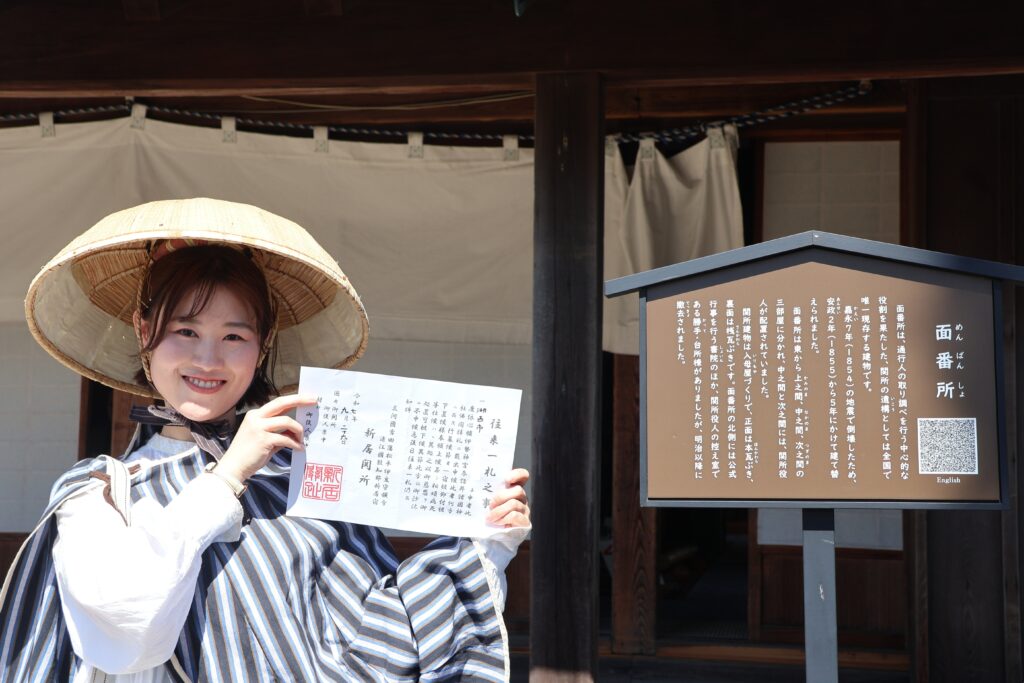 途中、「通行手形」作成体験を行い、江戸の旅人気分で新居関所へと向かいます。