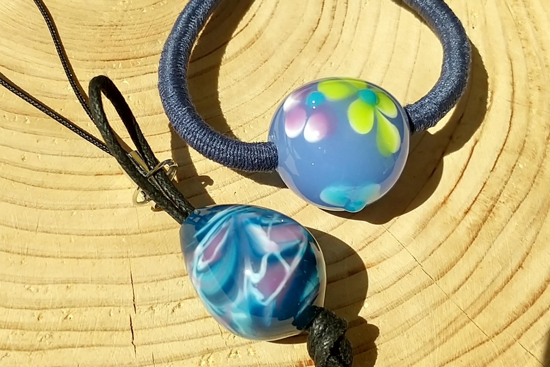 自分でつくったとんぼ玉は、ペンダントやストラップなどに仕立てると、日々の暮らしの中で長く寄り添ってくれます。