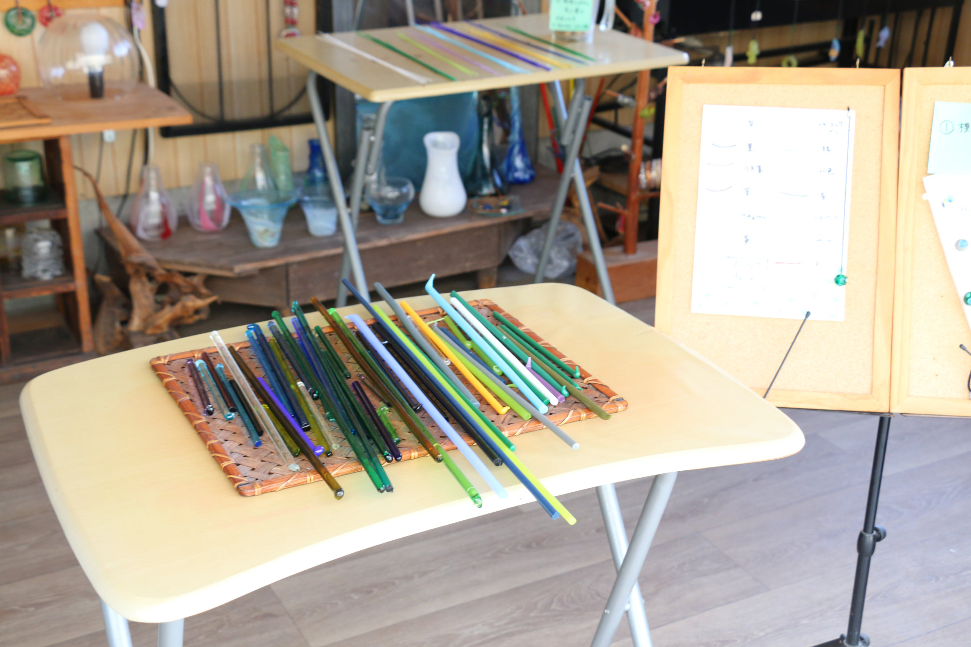 体験は、まず玉に使う色を選ぶところから始まります。透明なガラスに鮮やかな色を重ねたり、点や線で模様を描いたりと、選び方ひとつで印象が大きく変わります。