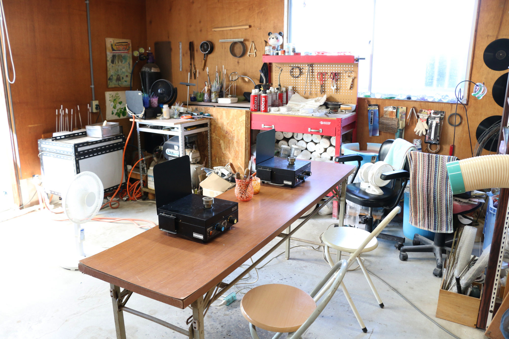 浜名湖のほど近く、田んぼが広がる静かな場所にある工房。整然と並んだ道具のひとつひとつが、長い時間をともにしてきたような佇まいを見せています。
