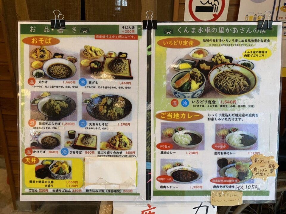 くんま水車の里内の「食事処かあさんの店」に移動し、体験で打ったそばや地元のご当地メニューが食べられます。