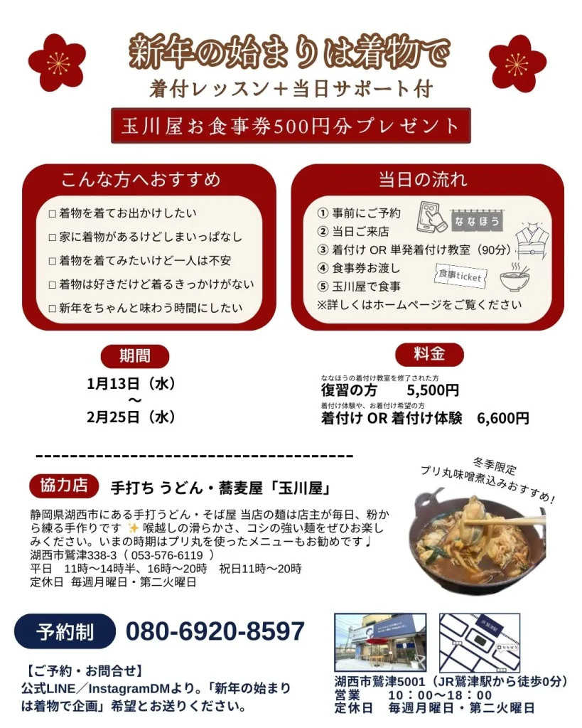 【2月25日まで】\新年の始まりは着物で/着付体験&お食事券プレゼント[浜名湖の牡蠣「プリ丸」も]