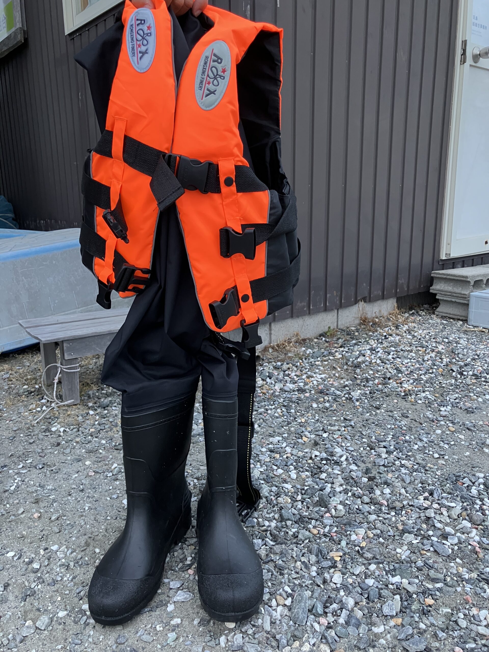 その後、大人・子どもそれぞれのサイズのライフジャケットと胴長を貸し出します。