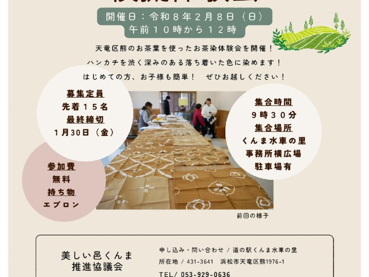 CultureNature2/8(日)お茶染め模擬体験天竜区熊(くんま)のお茶を使ったお茶染め体験会を開催!