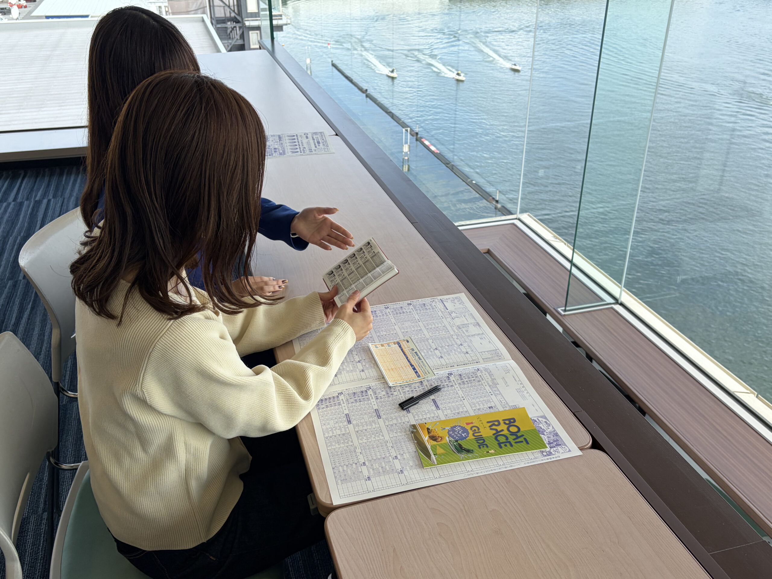 窓際の特等席でレース結果を待つ時間は、緊張感とワクワク感がたまりません。