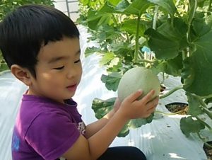 1.温室でお好きなメロン1玉の収穫を体験していただきます。