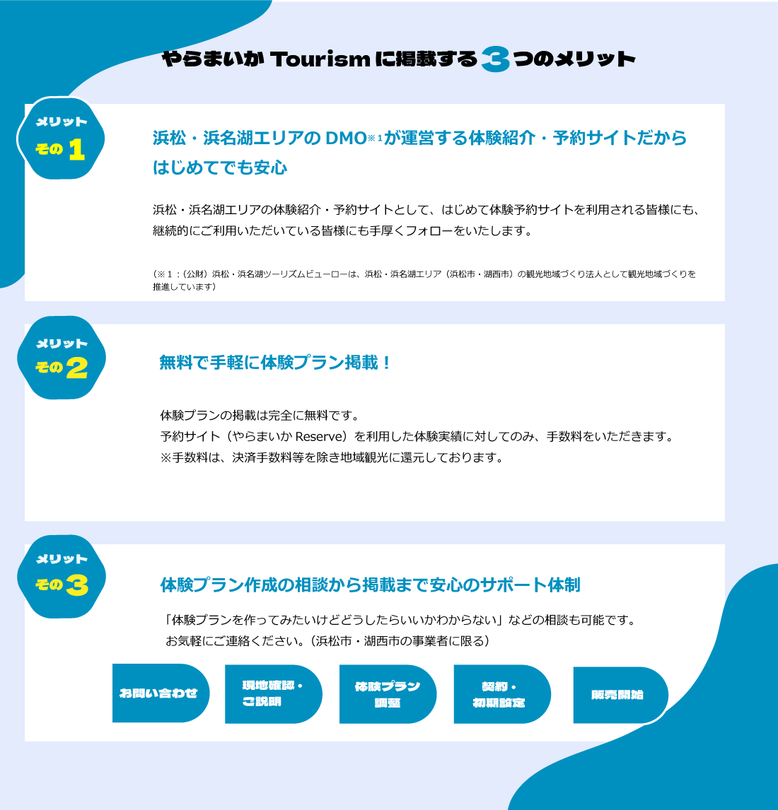 やらまいかTourismは、浜松・浜名湖エリア(浜松市・湖西市)に特化した体験紹介・予約サイトです。